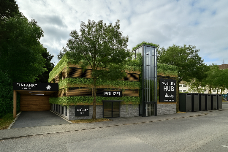 Darüber hinaus bietet sich die Integration eines Mobility Hubs an, um die Verkehrswende aktiv zu unterstützen: mit Carsharing-Angeboten, Stellplätzen für E-Scooter sowie einer ausreichenden Zahl an gesicherten Fahrradboxen.